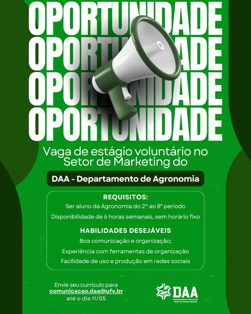 📧 Interessados devem enviar o currículo para comunicacao.daa@ufv.br até o dia 11/05.